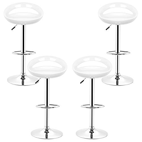RELOVE 4x Sgabelli da bar in plastica regolabile in altezza con schienale gievole design elegante selezione, materiale:plastica-Bianco -4pc