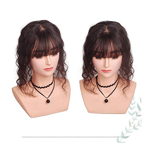 RemeeHi - Extension per capelli veri e propri capelli umani con clip, ondulati, con frangetta, 12 x 8 x 30 cm, colore nero naturale