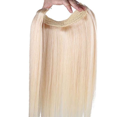 Remeehi - Extension in veri capelli umani, di tipo Halo, applicabili tramite filo diritto invisibile, facili da indossare, in pezzo singolo, lunghezza da 38,1 a 61 cm, larghezza 28 cm, peso 80 g
