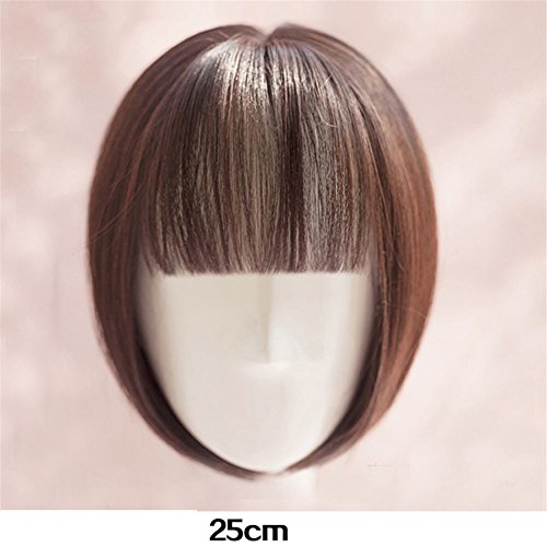 Remeehi - Topper per capelli sintetici a forma di bob, con clip, per capelli lisci e lisci, con frangetta, per assottigliare i capelli, marrone scuro