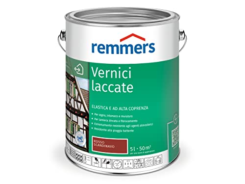 Remmers Vernice coprente rosso scandinavo, 5 litri, smalto a base d'acqua per interno ed esterno, pittura protettiva dagli agenti atmosferici per legno, sottofondi minerali e molti altri tipi di supporto