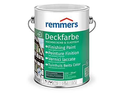 Remmers Vernice coprente verde bottiglia, 2,5 litri, smalto a base d'acqua per interno ed esterno, pittura protettiva dagli agenti atmosferici per legno, sottofondi minerali e molti altri tipi di supporto