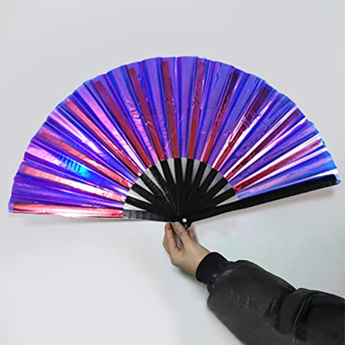 Remorui Grande Shining Rave Pieghevole Ventaglio A Mano 13 Costole Ventilatore Palmare Night Club Festival Halloween Performance Prop A#
