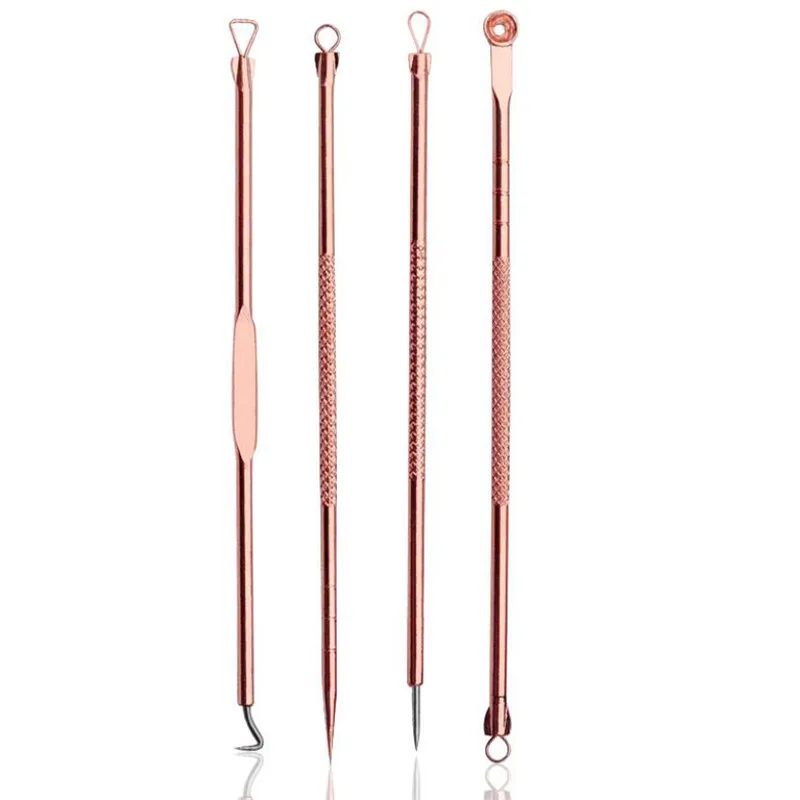 4pcs Rose Gold Acne Removal Needle Pimple Needle Blackhead Remover Acne Treatment Pore Clean Acne Extractor Face Clean Skin Care