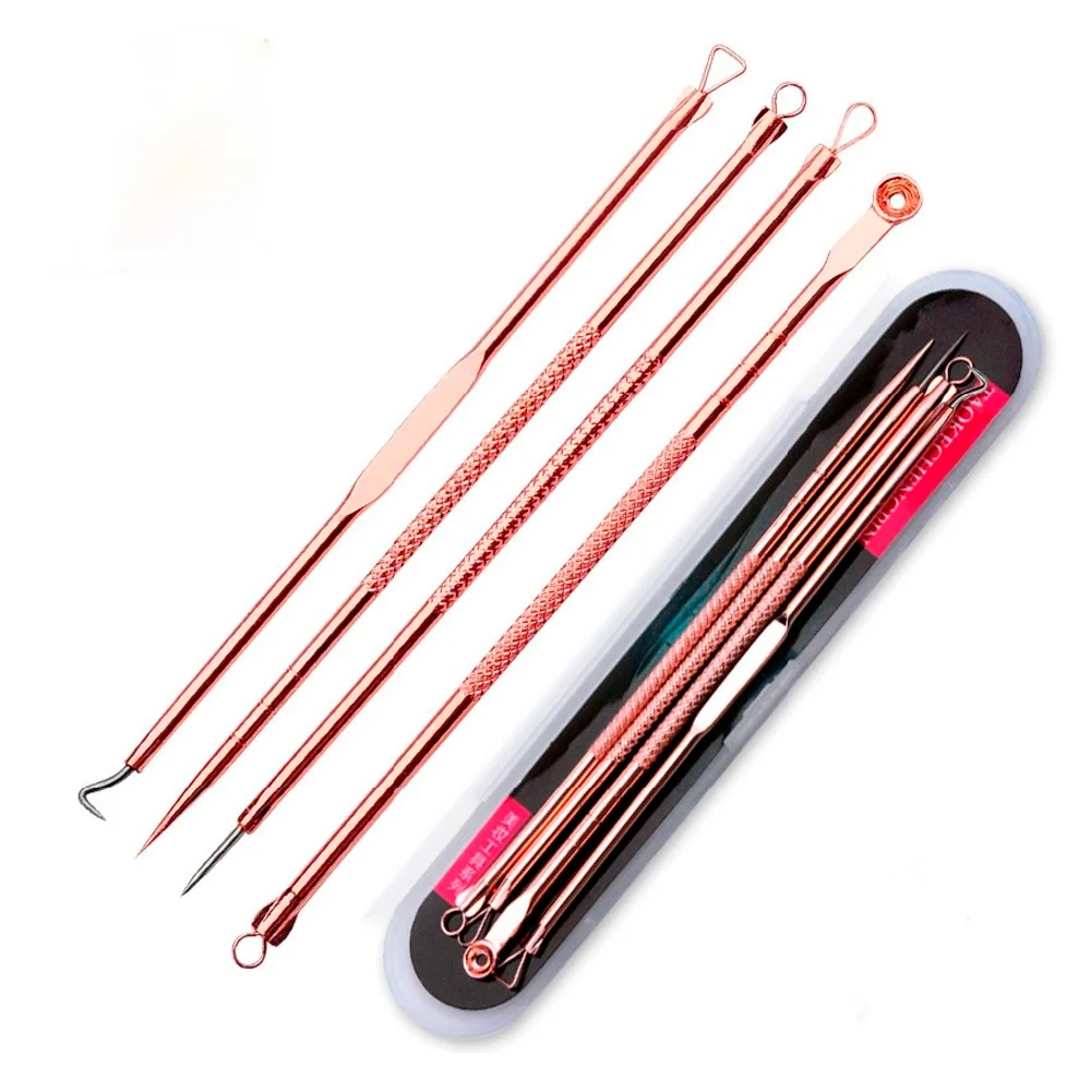 4PCS Rose Gold Acne Removal Needle Pimple Needle Blackhead Remover Acne Treatment Acne Needle Black Mask Acne Extractor Remover