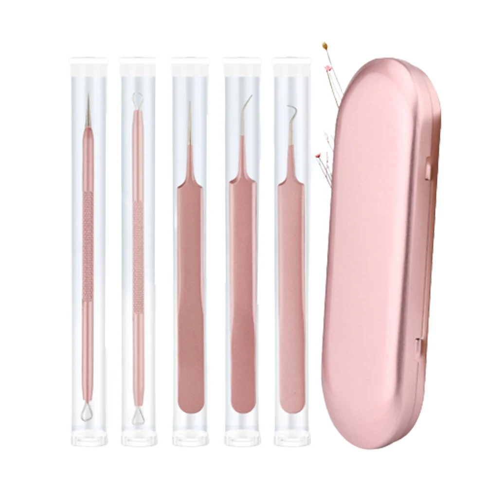 5Pcs Acne Removal Needles Kit Pro Dual Heads Blackhead Remover Needle Spot Pimple Extruder Spot Acne Clip Skin Care Tools