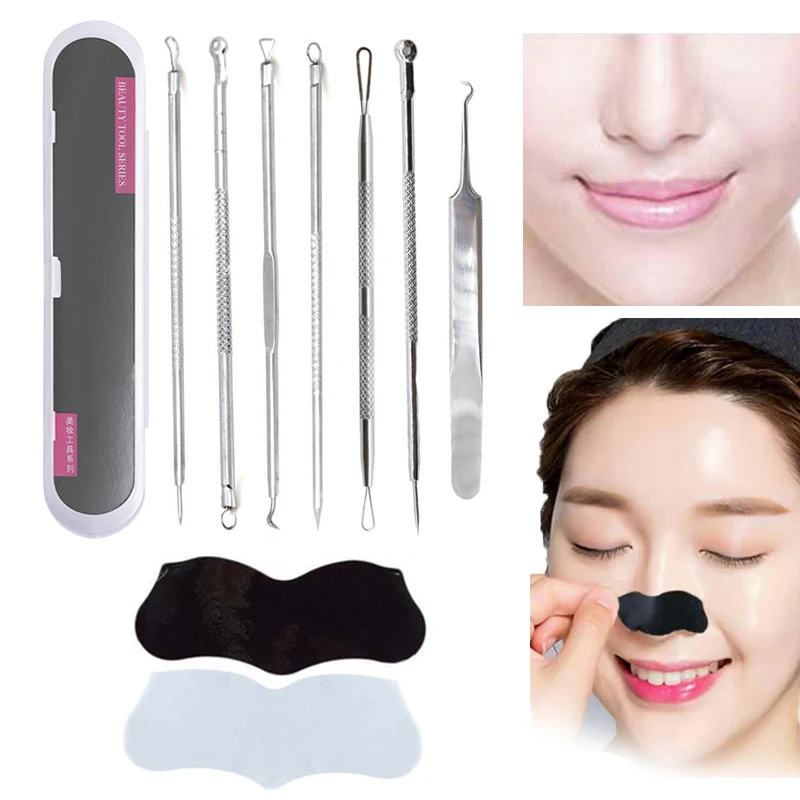 Acne Removal Needles Pimple Blackhead Remover Tools Spoon Face Care Needles Nose Mask Strips for Nose Cleansing Nose Stickers
