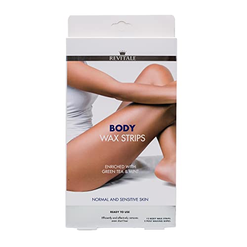 Body Hair Removal Wax Strips formulated for the care of dry and sensitive skin, enriched 100 % ecological Green Tea and mint 12 body Wax Strips by Revitale body wax strip