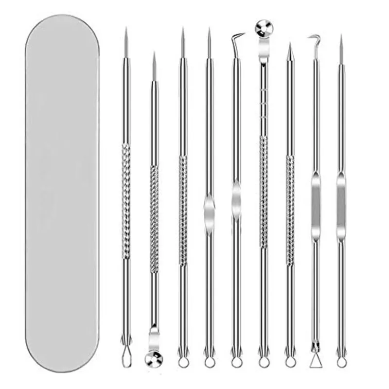 9pcs Nose Acne Removal Tools Blackhead Remover Pimple Popper Tool Kit Zit Removing Tweezer Pimple Extractor Comedone Skin Care