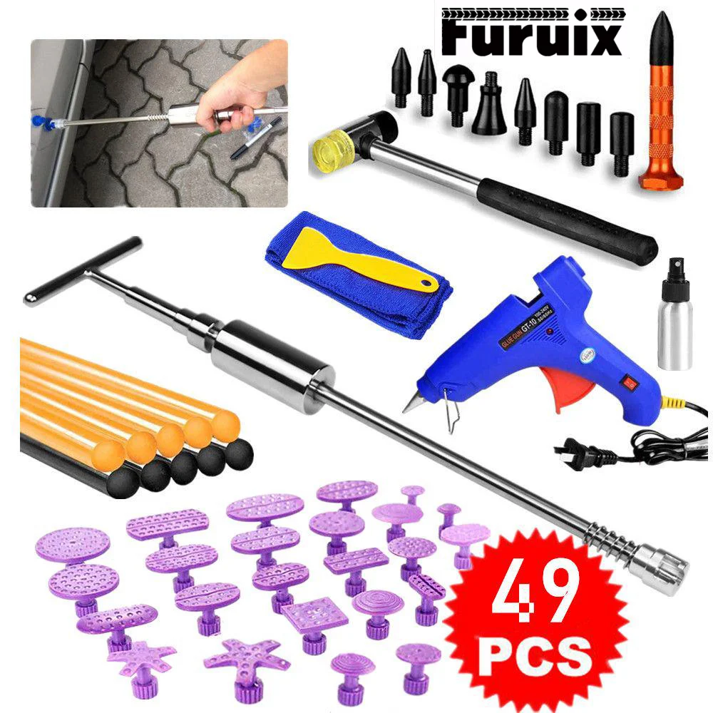 49 Pcs Car Dent Remover Tool Paintless Dent Repair Kit,Slide Hammer Tools Purple Tabs for DIY Automobile Body Dent Removal Tools