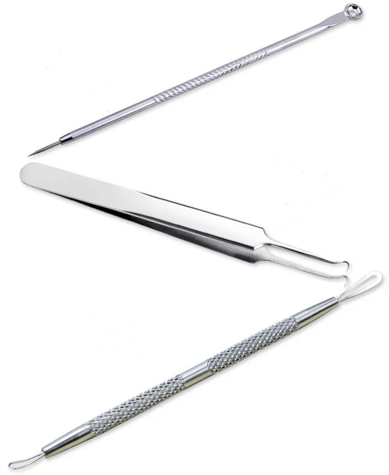 3pcs Acne Remover Toolkit Blackhead Pimple Cleaning Needles Comedones Squeezing Tweezers Facial Kit Beauty Care Tools