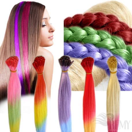 Ciocche colorate in 100% fibra sintetica giapponese Bicolor per il metodo di microanelli