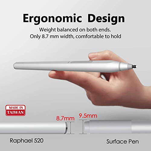 RENAISSER Surface Pen, Aggancio Magnetico, Prima Forma a D Come Surface Pen, Ricarica Rapida, 4096 Sensibilità alla Pressione, Ricaricabile, Corpo in Alluminio Aerodinamico, Raphael 520