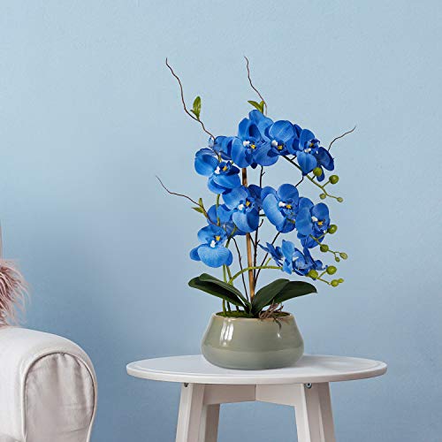 RENATUHOM Orchidea finta fiori artificiali per la decorazione orchidea fiori finti, orchidea in vaso, per la casa, tavolo da interni, fiori blu, camera da letto, decorazione da bagno, decorazione da