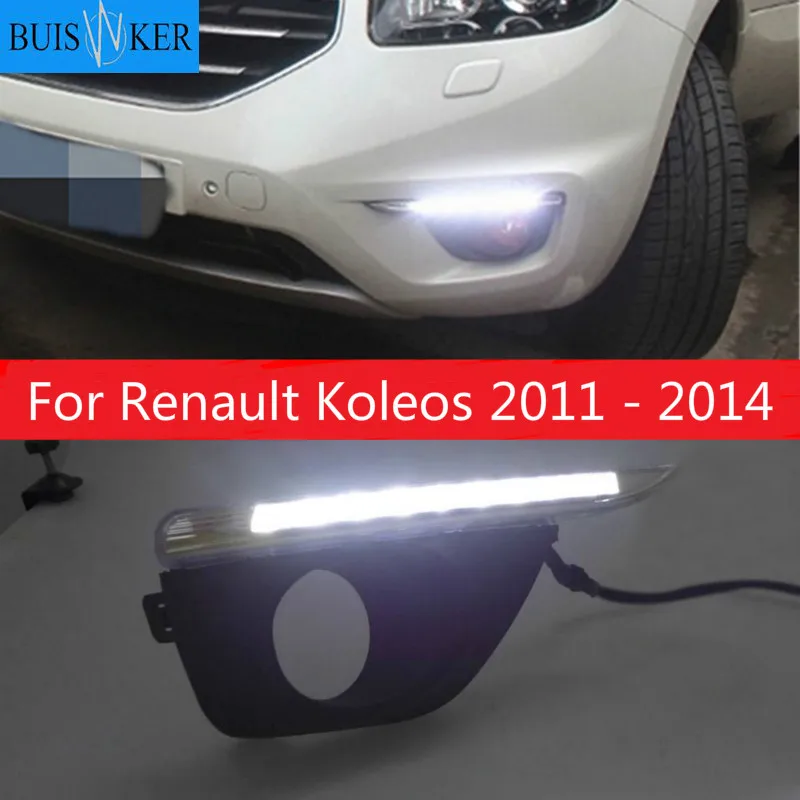 For Renault Koleos 2011 - 2014 Super Brightness Waterproof ABS Car DRL 12V LED Daytime Running Light With Fog Lamp Cover