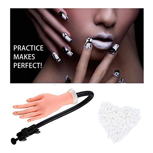 RENNICOCO Training Hand Practice Nail Art Trainer Mano Regolabile Training Modle + 100 Tips
