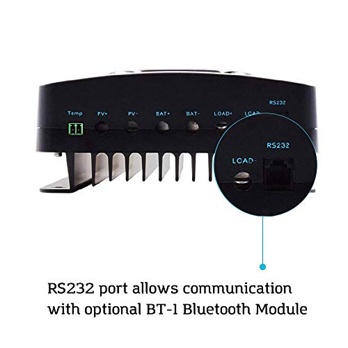 Monitoraggio remoto: la porta di comunicazione RS232 consente al Renogy Rover di comunicare con il modulo Bluetooth Renogy BT-1, che consente di monitorare lo stato e la produttività dei pannelli tramite l'app Renogy DC Home.