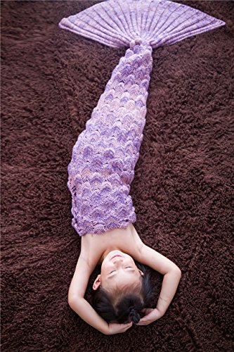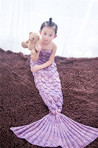 Renoliss coperta sacco a pelo in maglia all'uncinetto a forma di coda di sirena, sacco a pelo per bambini, coperta per tutte le stagioni, 140 x 70 cm kids dark pink