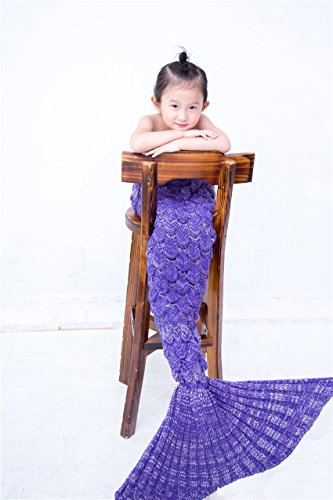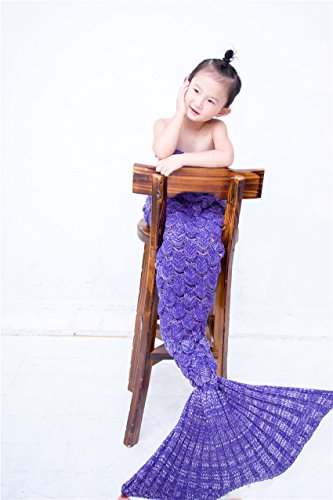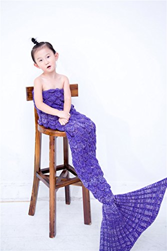Renoliss coperta sacco a pelo in maglia all'uncinetto a forma di coda di sirena, sacco a pelo per bambini, coperta per tutte le stagioni, 140 x 70 cm kids purple -2