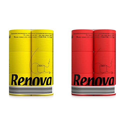 Renova 200054362 Carta Igienica, 6 rotoli, Giallo, 16.1 m & 200065859 Carta Igienica, 6 Rotoli, Rosso, 16.1 M, color Rosso