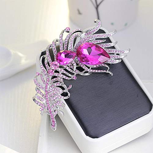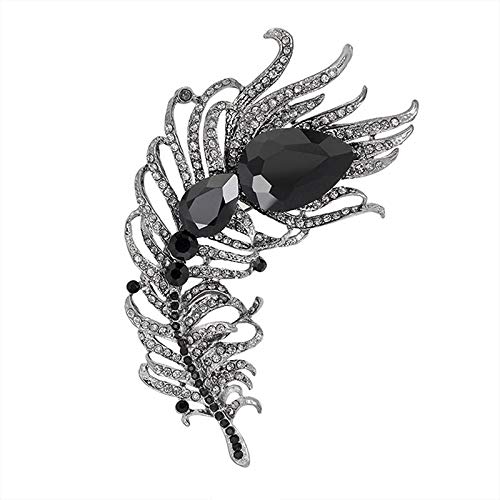Renquen - Spilla a forma di piuma di pavone, con strass, per donne e ragazze e Lega, colore: Nero, cod. FJXKRXX6DK