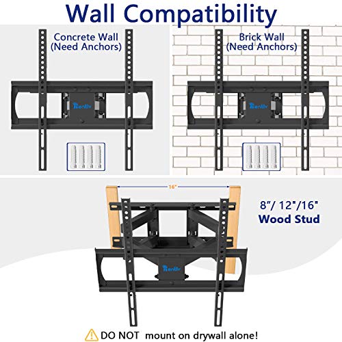 Rentliv Supporto TV Staffa di Montaggio TV Ultra Resistente a Doppio Braccio per TV Piatte e Curve da 26-55 pollici Fino a 45 kg, TV VESA Massimo 400x400mm