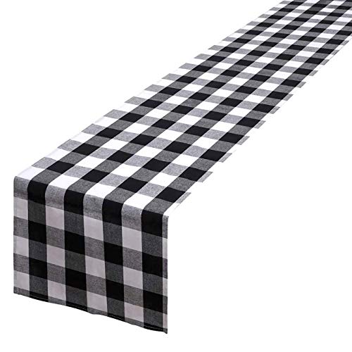 Reofrey Table Runner con plaid nero e bianco, in cotone e poliestere Blend Crochet Table Runner Dresser Scarves for Christmas Wedding Holiday Events Family Dinner Kitchen Table -15,8 x 70,8 pollici