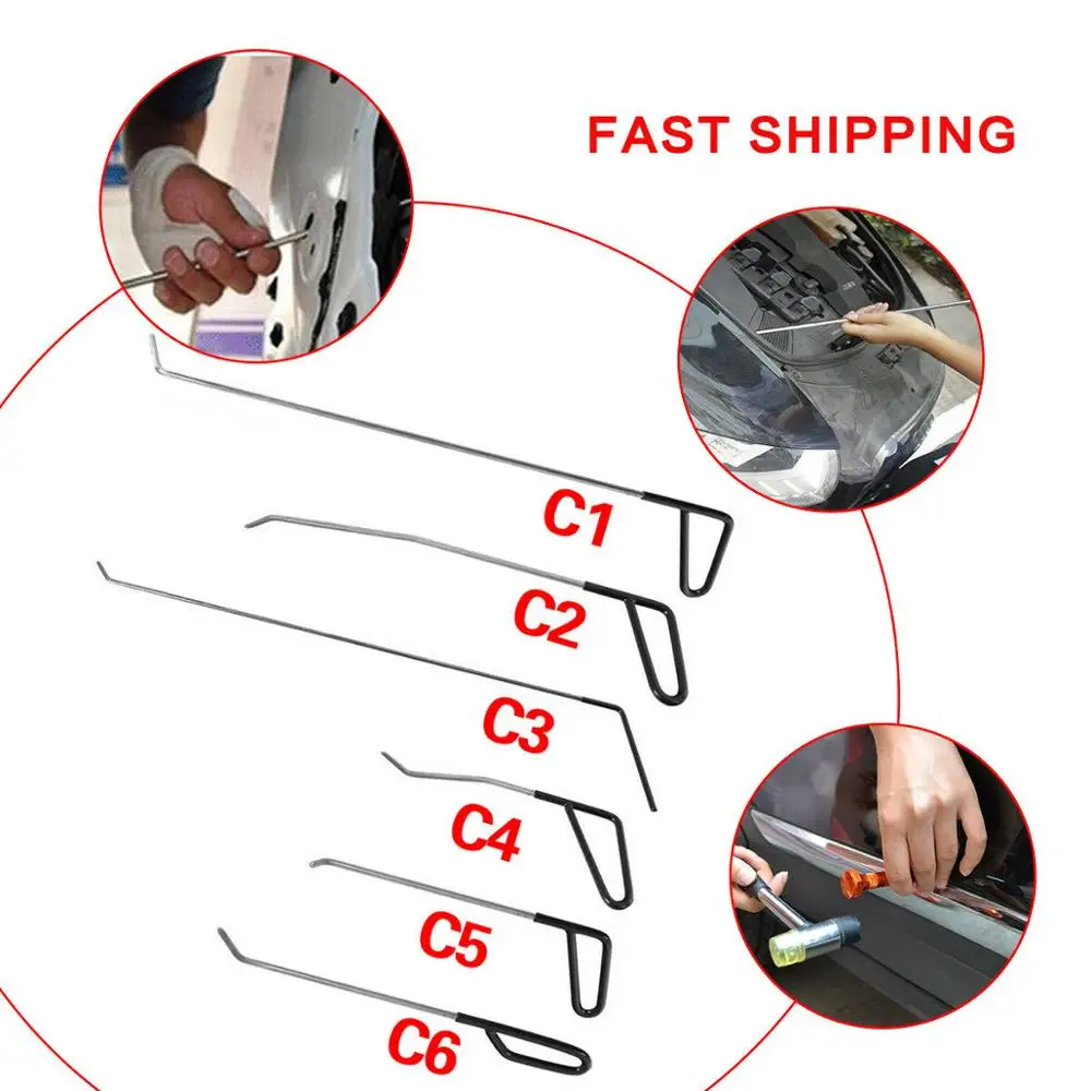 Car Repair Rods Hook Tools Hail Repair Kit Paintless Dent Removal Puller Sets Car Door Dings Repair Hand Tools (6 Pcs)