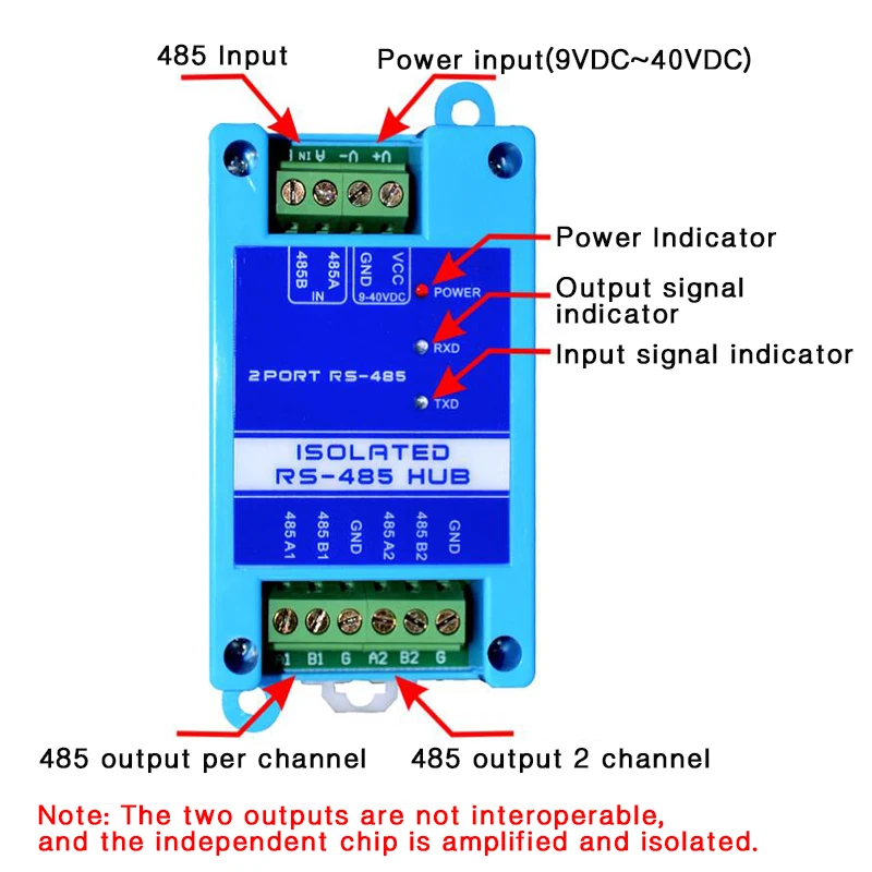 485 repeater photoelectric isolation industrial grade RS485 hub 2-port signal amplifier anti-interference lightning protection