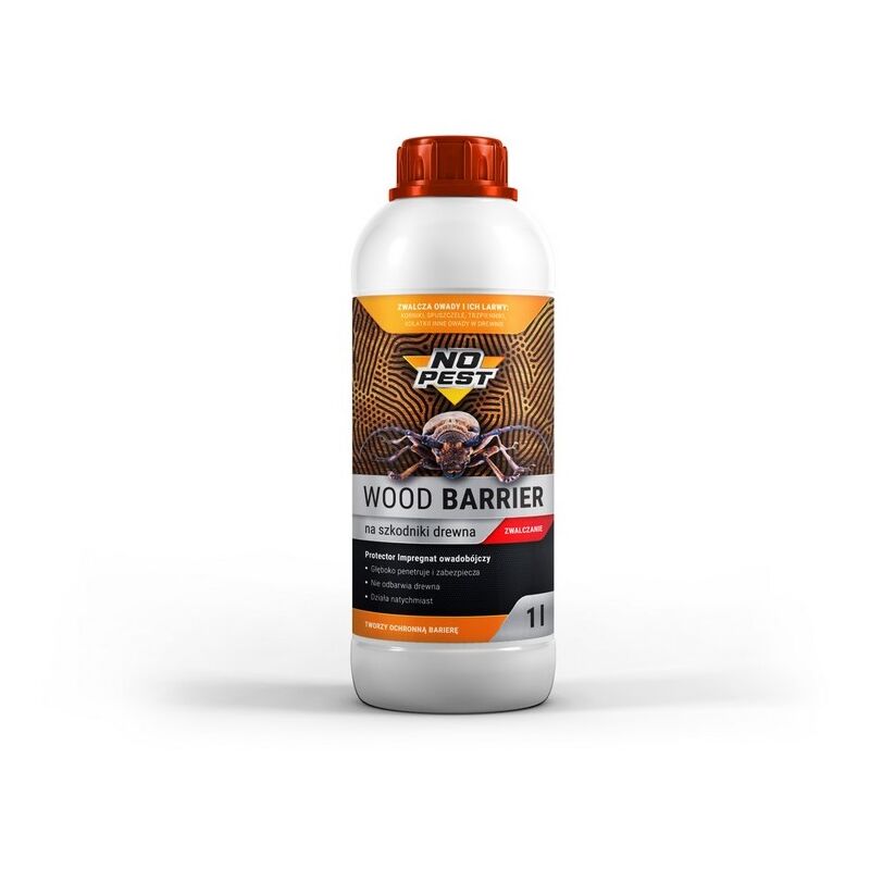 Dati tecnici: Principio attivo: Permetrina (0,267 g/100 g) Forma: liquido Capacità: 1 l Il preparato per scarabeo corteccia NO PEST WOOD BARRIER è un efficace impregnante insetticida con effetto immediato. Grazie all'aggiunta di sostanze penetranti, l'agente penetra in profondità nella struttura del legno e protegge perfettamente da molti tipi di parassiti come scolitidi, scolitidi, scarafaggi, termiti e altri e forma una barriera protettiva sulle superfici in legno impregnate . NO PEST WOOD BARRIER combatte efficacemente anche il legno già infetto - combatte sia gli insetti adulti che le loro larve: 1. Elimina le larve dei parassiti nel legno infetto - muoiono immediatamente dopo l'applicazione.2. Respinge i parassiti del legno in modo che la materia prima non venga attaccata dai successivi insetti che depongono uova. Il preparato antiparassitario è un liquido incolore, quindi è possibile utilizzarlo su qualsiasi tipo di legno. - La formula concentrata penetra in profondità in molti