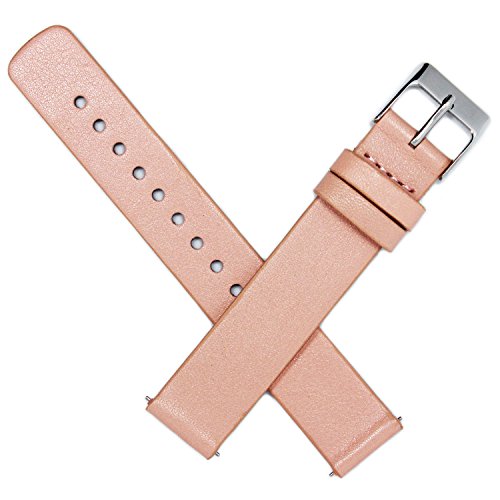 GOOQ 16MM Replacement Leather Watch Band with Stainless Steel Pin Buckle Strap for Moto 360 2 Generation (Woman, Plate 42mm) and Normal Width 16mm Watches (Rose Gold-Regular Design)