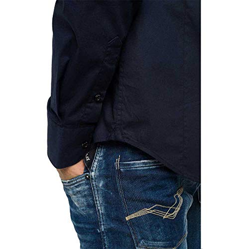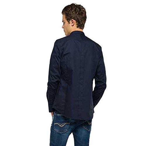 REPLAY - Camicia da uomo New Kent, a maniche lunghe, in cotone, slim fit, elasticizzata, tinta unita, colore: bianco