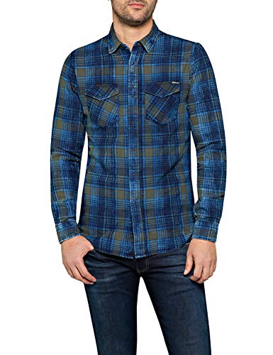 REPLAY M4998 .000.52138 Camicia, Blu (Navy/Blue/Grey 10), S Uomo