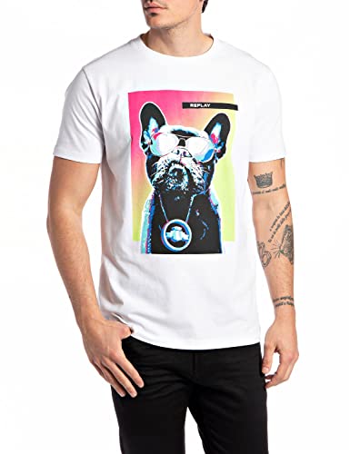 REPLAY M6256 T-Shirt, 001 Bianco, L Uomo