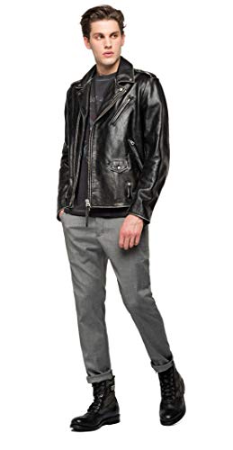 REPLAY M8115 .000.83976 Giacchetta di Pelle, 10 Nero, L Uomo