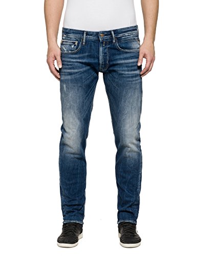 Jeans Ronas di Replay. Questi jeans convincono grazie al loro fresco lavaggio. La gonna ha un taglio normale e casual con una gamba stretta. La classica forma a 5 tasche completa il design. I jeans Ronas di Replay sono i jeans perfetti per l'uomo alla moda e si adattano perfettamente alla camicia o alla maglietta.