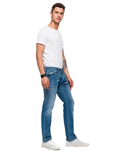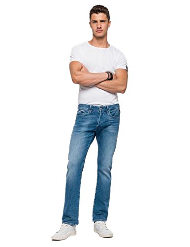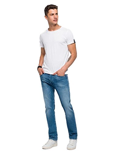 La Waitom ha un taglio normale e casual con una gamba leggermente stretta. Questi jeans sono chiusi da quattro bottoni, ma fino alla parte superiore sono nascosti da una bottone. La classica forma a 5 tasche completa il design. I jeans WAITOM di Replay sono i jeans perfetti per l'uomo alla moda e si adattano perfettamente a una camicia o una maglietta