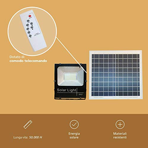 REPLOOD Faro Led 200W Con Pannello Solare Crepuscolare + Telecomando IP67