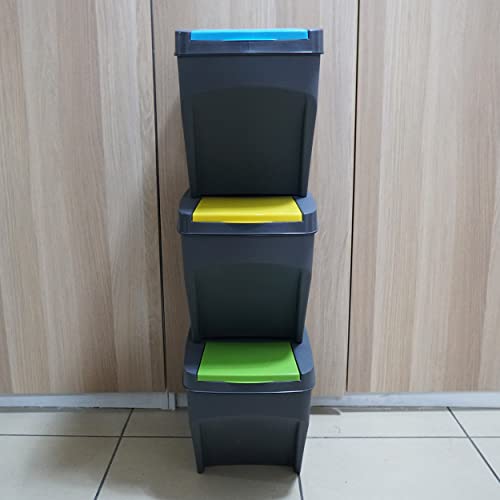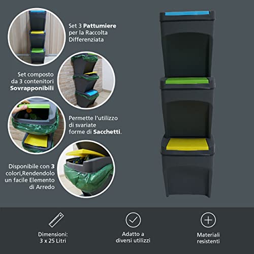 REPLOOD Set 3 Pattumiere per la Raccolta Differenziata 3x25 Litri Componibile Modulabile e Impilabile (Set da 3)
