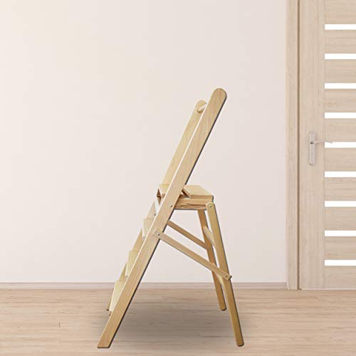 REPLOOD Scala Scaletto Sgabello in Legno Di Faggio Naturale 4 Gradini System Secury