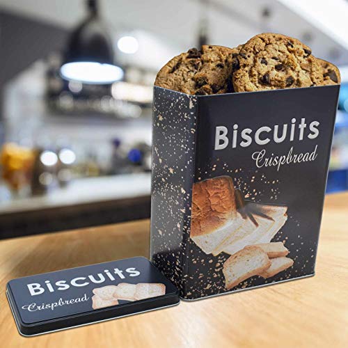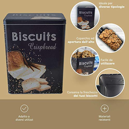 REPLOOD Scatola in Latta Rettangolare Porta Biscotti Biscottiera Biscuits 25x18 cm