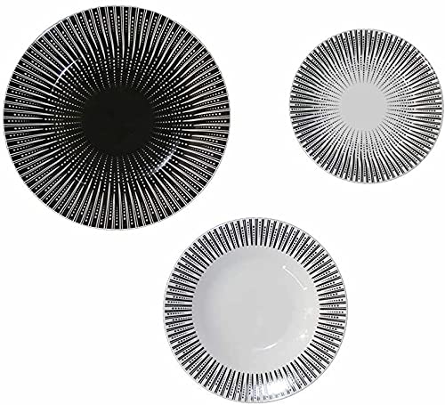 REPLOOD Servizio Piatti 18 Pezzi in Fine Porcellana 6 Persone Modello Noir Bianco e Nero