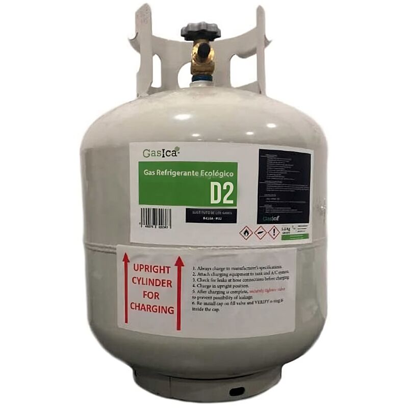 1 BOTELLA DESECHABLE, CON VALVULA DE SALIDA 1/4. Gas Ecologico D2 5,5Kg Sustituto R12, R134. Gas Refrigerante Gasica 5,5kg. Para sistemas con R12 - R134 - 100% orgánico. Es un nuevo gas ecológico basado en la eco-tecnología norteamericana SUMGAS. Su fórmula (HC) hidrocarbonados no contiene productos clorados, fluorados u otros componentes tóxicos y contaminantes, por lo que se garantiza que su uso no produce contaminación y se califica como gas ecológico. Sus componentes hidrocarbonados puros efectuan en el circuito una limpieza extra de suciedad producida por la descomposición de los gases degradados, ayuda a la regeneración de dichos componetes descompuestos sin producir atascos en el sistema. Es compatible con la mayoria de gases clorofluorados.
