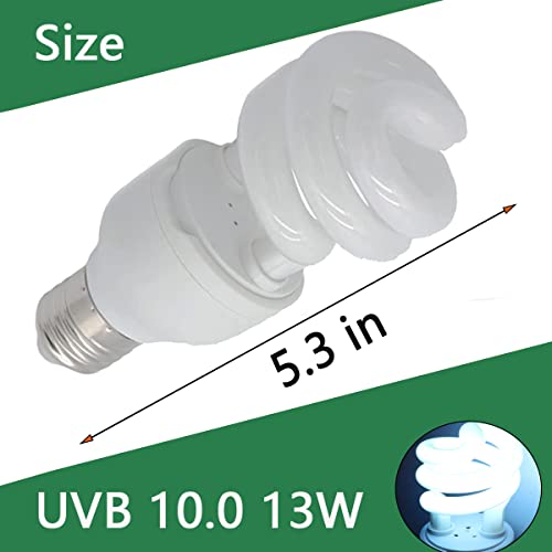 UVB Reptile Light 10.0, Lampadine Tartaruga Lampada da Terrario Compatta a Risparmio Energetico per Rettili del Deserto Serpente/Lucertola/Insetto/Tubo a Spirale Leopardo (UVB10.0 13W)
