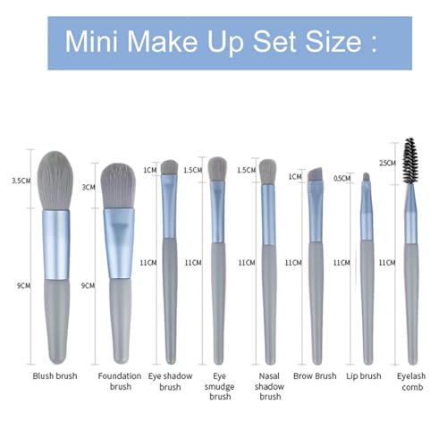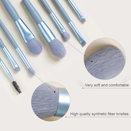 REQAG 8 Pezzi Pennelli Make Up Professionali Set Pennelli da Trucco con Trousse in Pelle PU Set per Fondotinta Cipria Correttore Fard e Occhi, blu