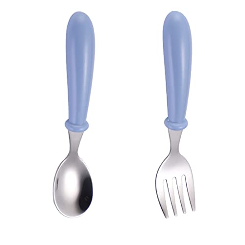 Set di posate per bambini: 2 Pezzi Posate per Bambini in Acciaio Inox: Riceverai 1 cucchiai e 1 forchette per bambini, blu, Posate sono progettate appositamente per bambini.