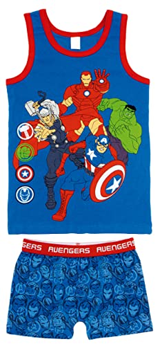 REQUETEGUAY Pigiama Avengers per bambini | Pigiama Marvel | Completo Avengers Maglia Tiranti e Pantaloni Corto | Pigiama Avengers per estate, blu, 6 anni