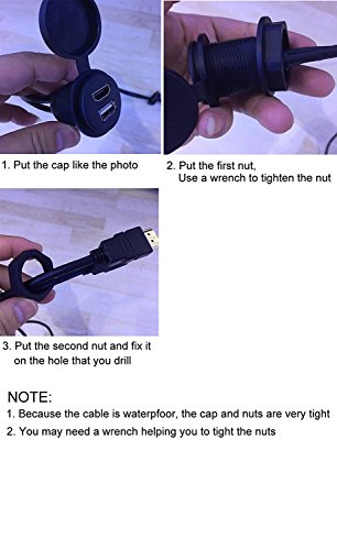 Rerii 0,9 m 1 meter USB e AUX prolunga HDMI Dash pannello montaggio a filo cavo per auto, barche e moto