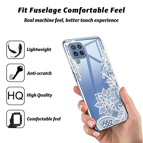Reshias Cover per Samsung Galaxy M32 4G / M22 4G / A22 4G 6.4'', Fiore Bianco Morbido TPU Protettiva Custodia con Tre [9H Durezza] Vetro Temperato Pellicola Protettiva