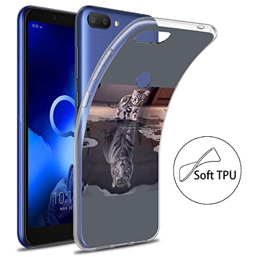 Reshias Custodia per Alcatel 1S 2019 Cover Silicone Trasparente Gel TPU (Chat) Morbido Antiurto Protettiva Shell Cover per Alcatel 1S 2019 con (2 Pack) Vetro temperato
